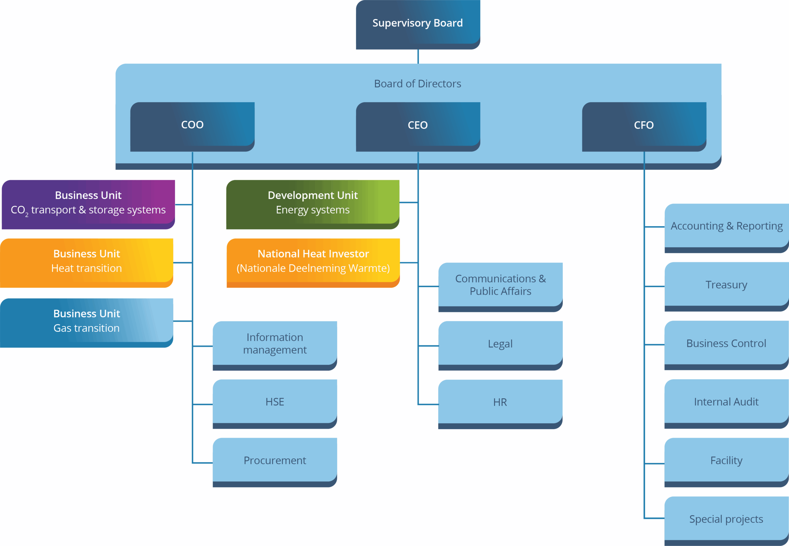 Energie Beheer Nederland operates exclusively in the Netherlands. Our approximately 230 employees all work from our office in Utrecht. EBN has a Board of Directors and a Supervisory Board and is arranged into an energy system unit and three business units: gas transition, heat transition, and CCS systems.